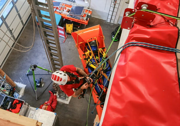 - Level 1: Grundlagen der technischen Rettung mittels Trage auf abschüssigem Gelänge. Knoten, einfache Flaschenzüge, Anschlagpunkte, das Abseilen und Aufsteigen am Seil, das Tragen-Handling im Steilgelände und passive Seilsysteme sind Teil vom Lehrgang. Alles in Teamarbeit.